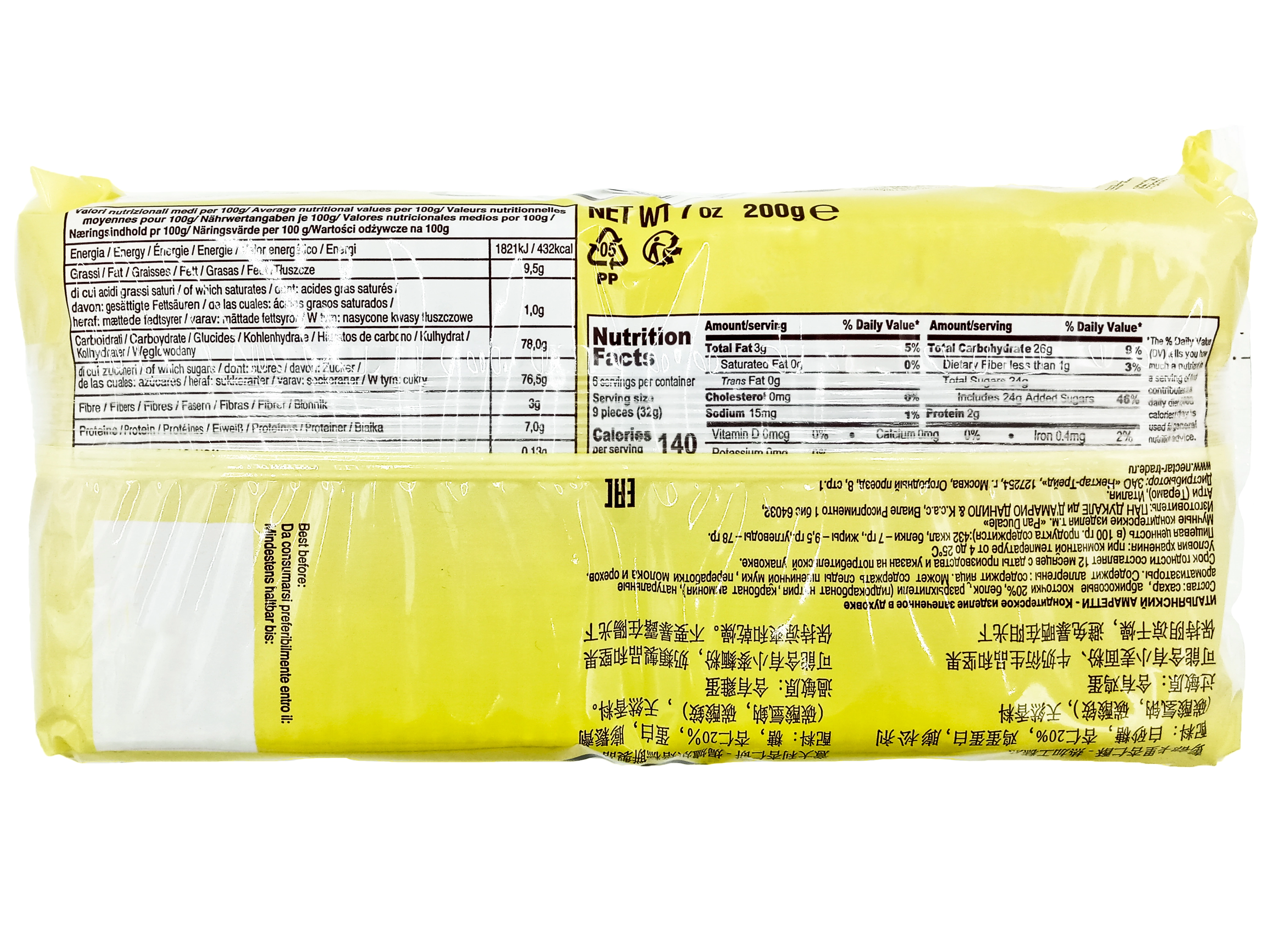 cukier,migdały,morele 19%,białko jajka,białko mleka,aromaty,proszek do pieczenia(węglan amonu).może zawierać ślady glutenu(mąka),orzechów i soi.Przechowywać w suchym miejscu. Data przyd. do spoż. na opakowaniu.