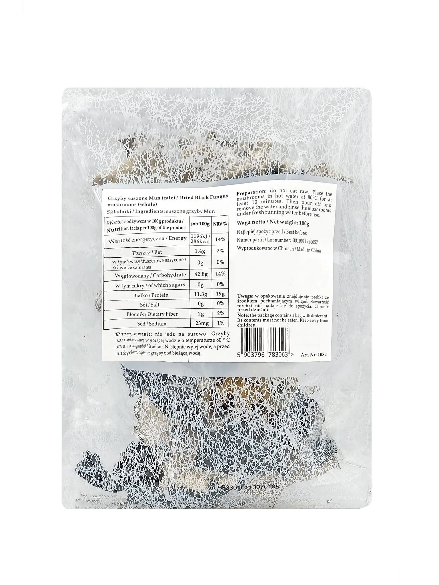 Składniki produktu: Grzyby mun suszone 100%