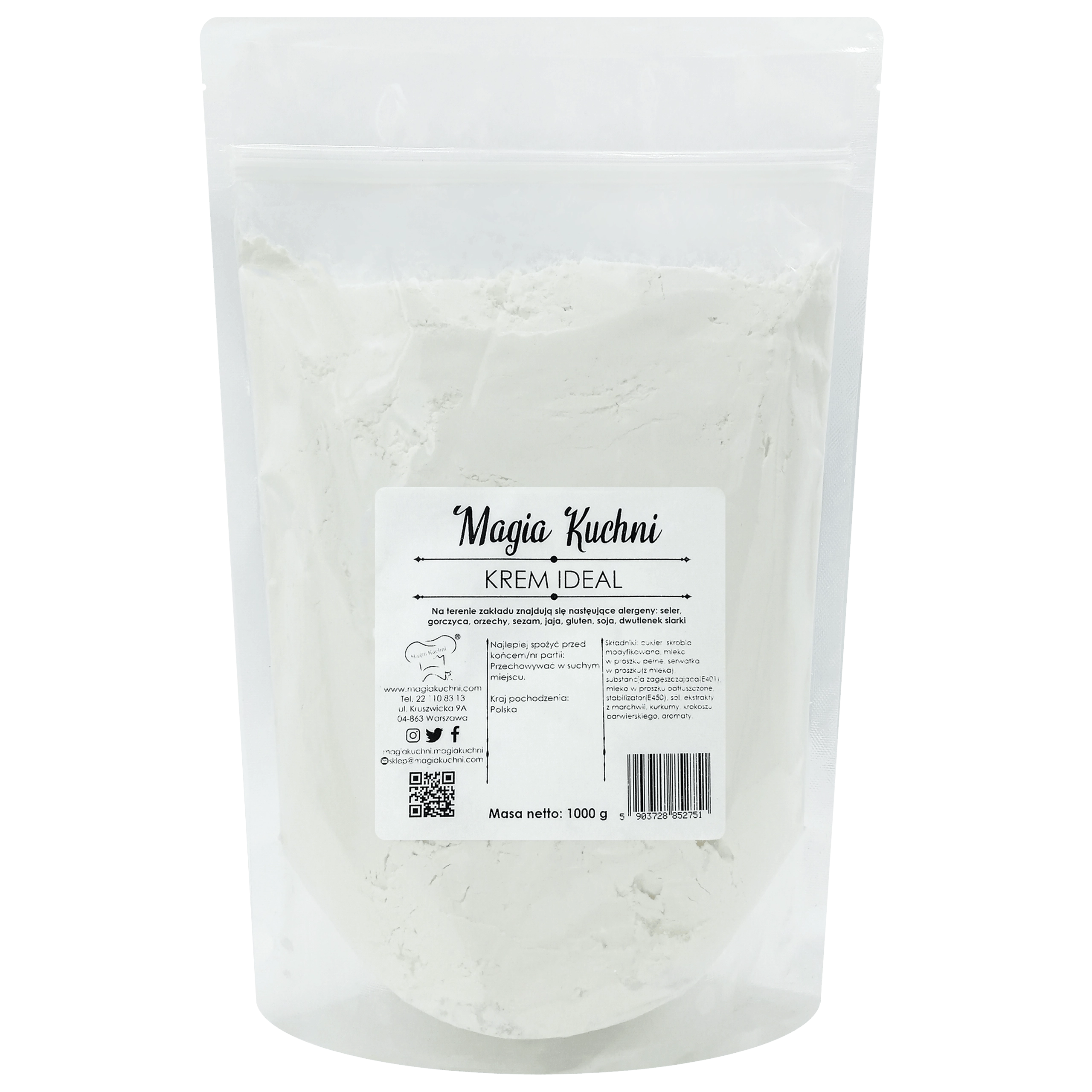 Składniki produktu: Cukier, skrobia, modyfikowana, mleko w proszku pełne, serwatka w proszku (z mleka), substancja zagęszczająca (E40), mleko w proszku odtłuszczone, stabilizator: difosforany, sól, aromaty, barwniki (karoteny i ryboflawiny)