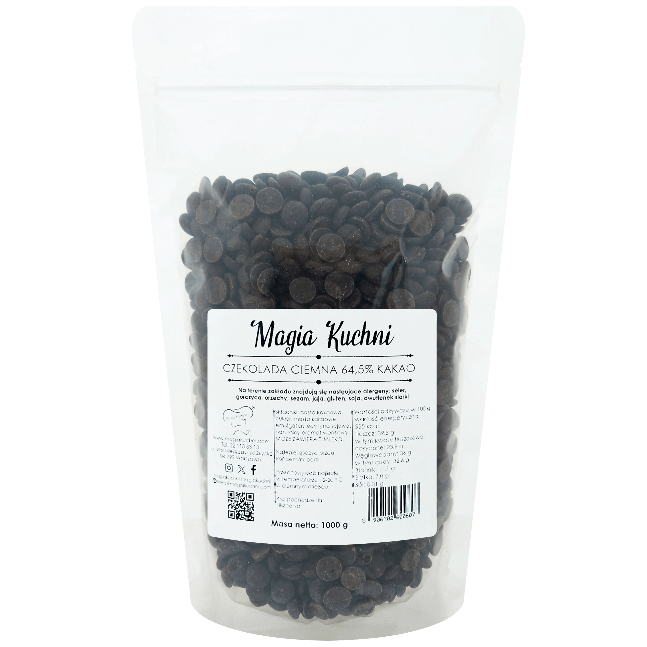 Czekolada ciemna 64,5% kakao dyski
