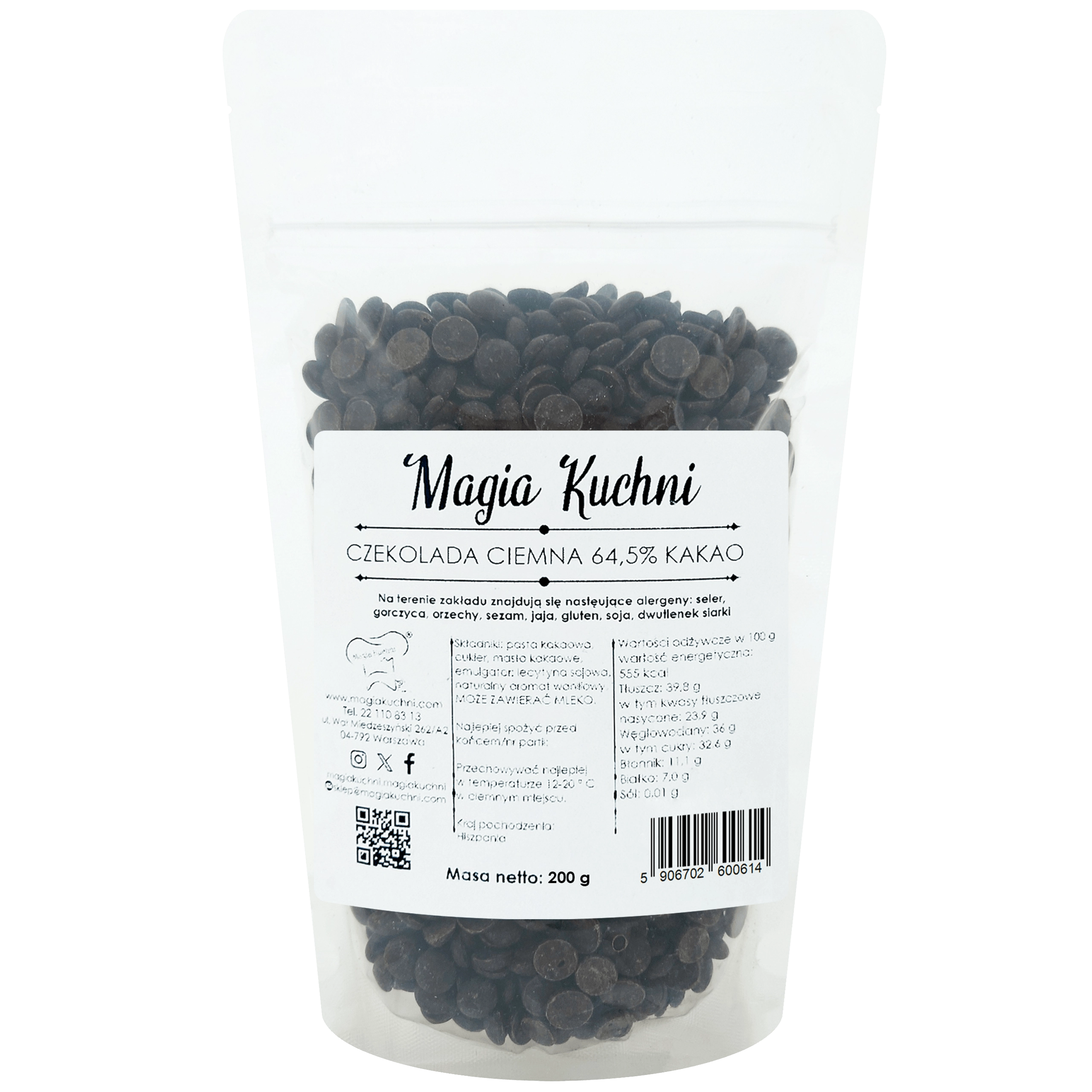 Czekolada ciemna 64,5% kakao 200g dyski