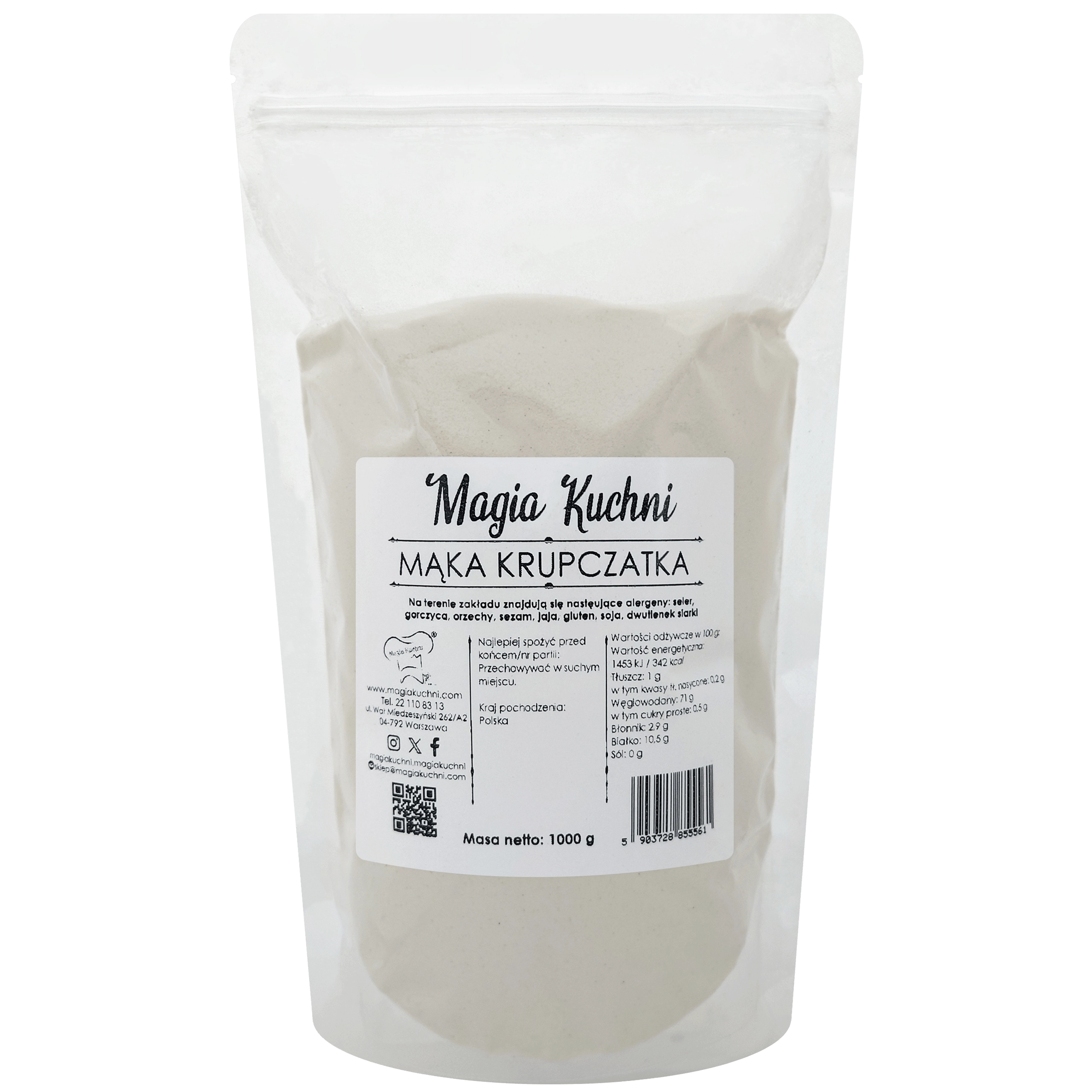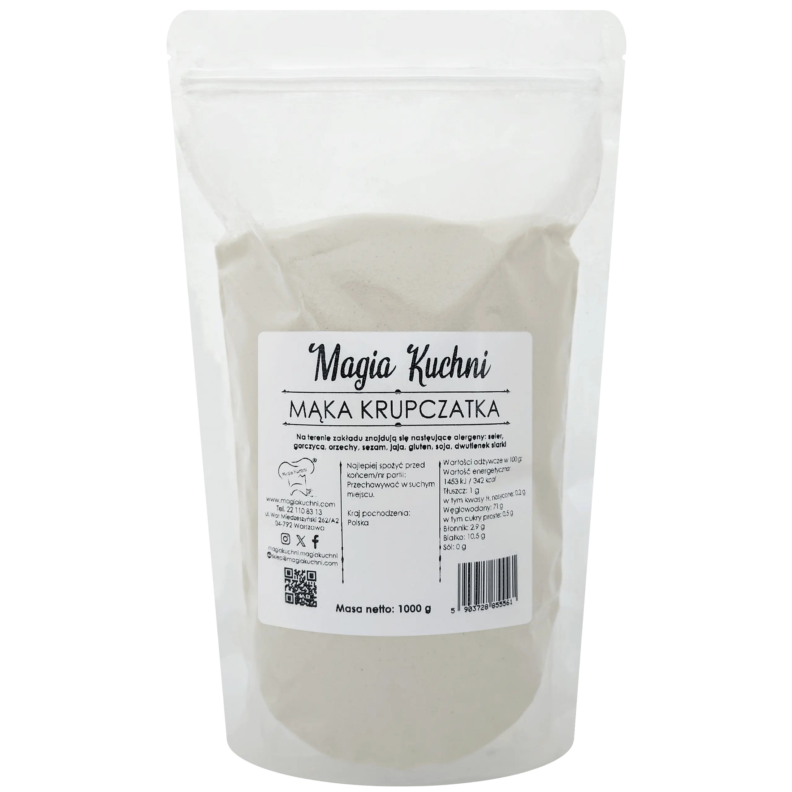✔ Specjalna struktura ziaren – krupczatka ma większe cząstki niż zwykła mąka pszenna, co zapewnia wypiekom lekkość i elastyczność.